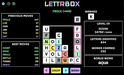 - Spelling the bonus word now yields a score of either the word score plus 300 points or 2.5x the word score, whichever is greater (originally it was a flat 200-point bonus)